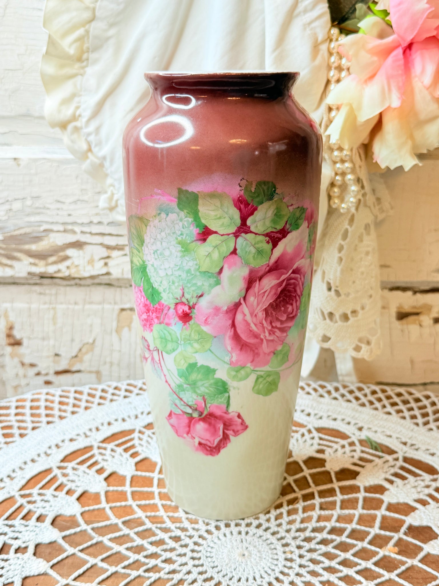 ANTIQUE BAVARIA TALL PORCELAIN FLORAL VASE
