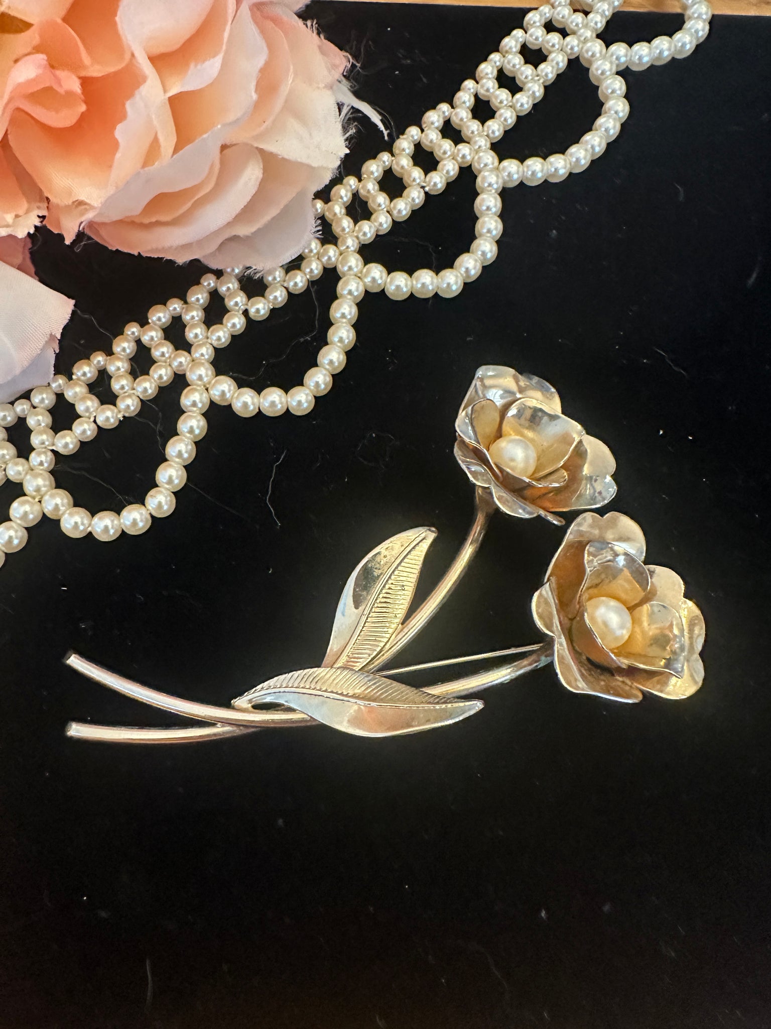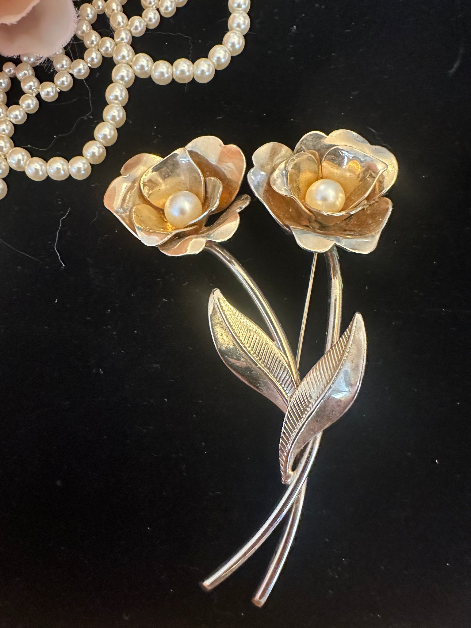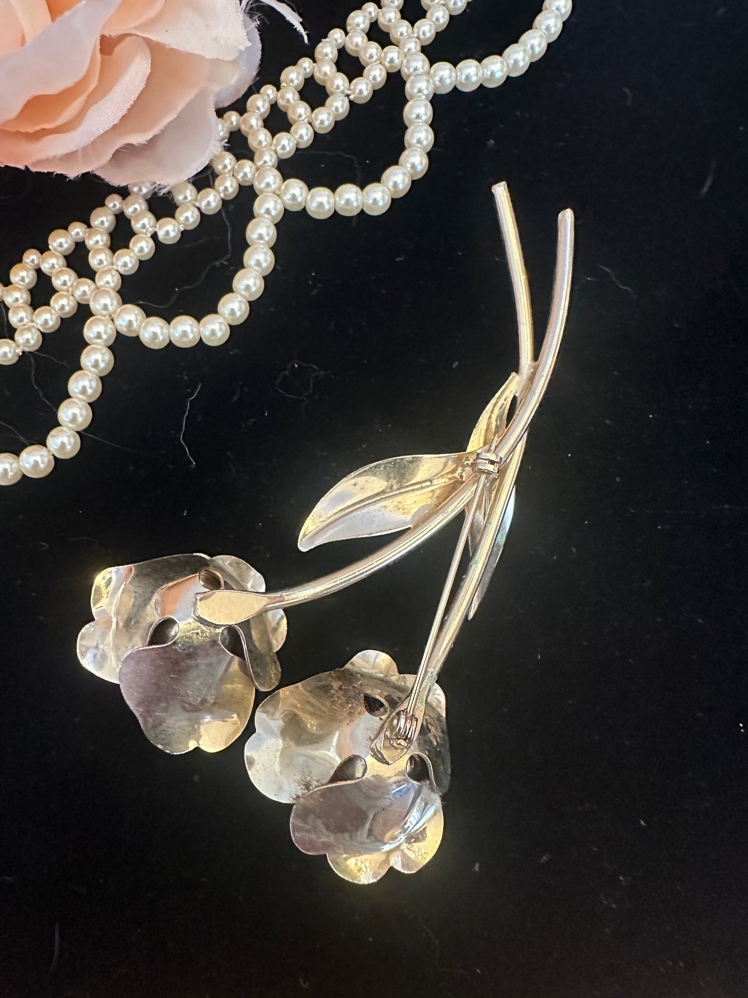 ANTIQUE VICTORIAN SIGNED LARGE FLORAL PEARL BROOCH