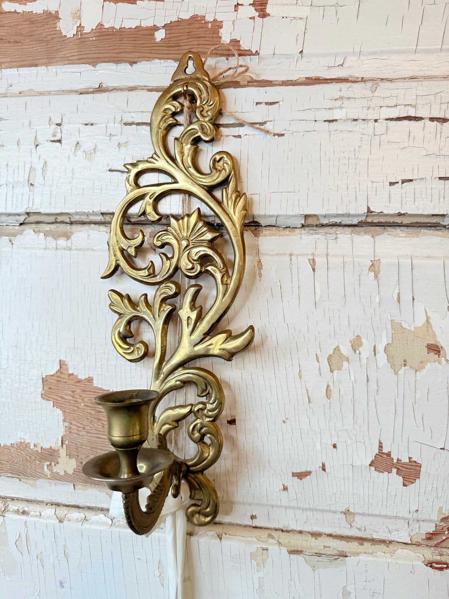 AMAZING ANTIQUE SOLID BRASS LARGE CANDLE SCONCES RARE!!!
