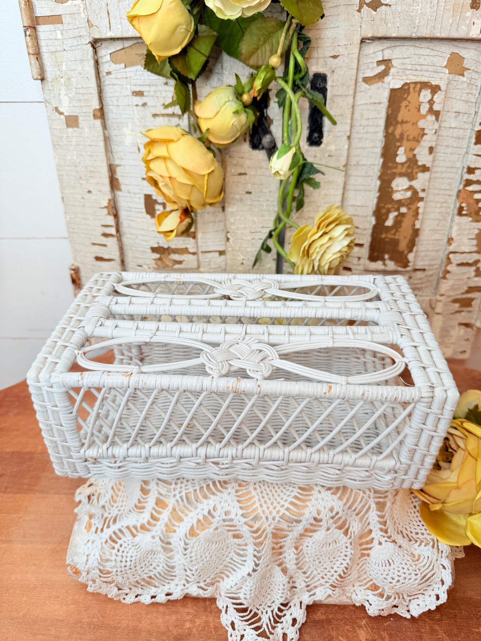 RARE AMAZING WHITE WICKER TISSUE BOX COVER