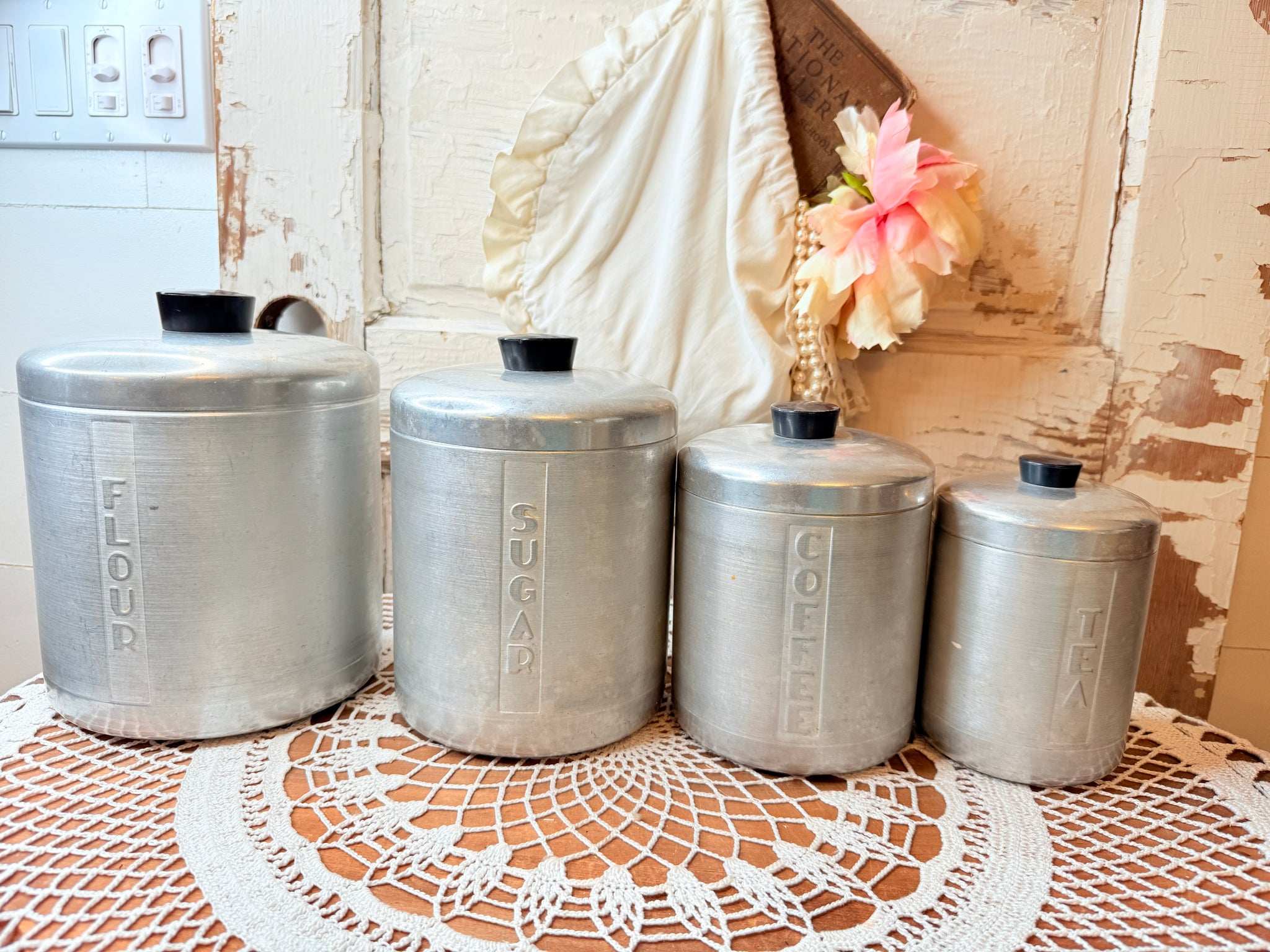 1950S VINTAGE 4 PIECE ALUMINUM CANISTER SET