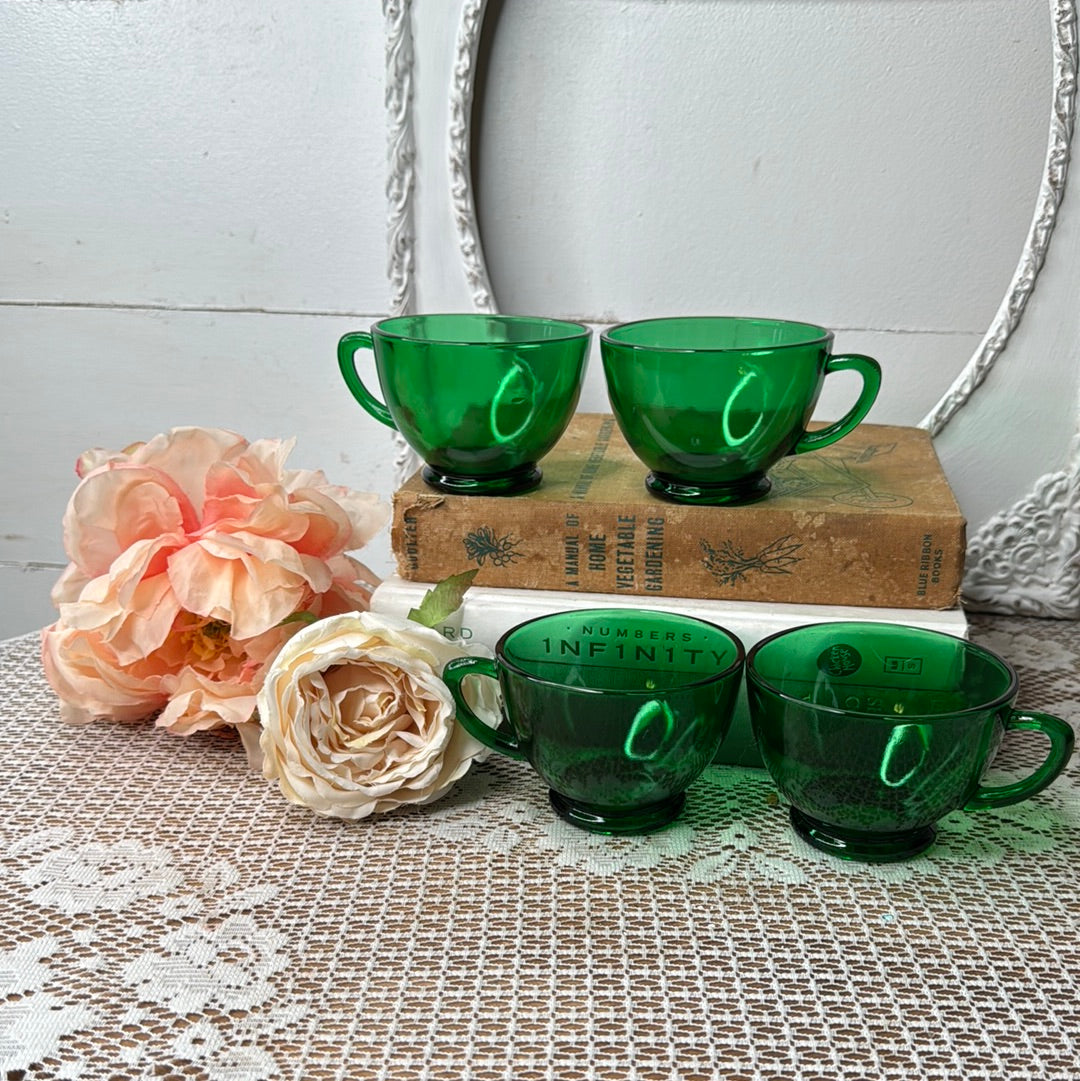 SET OF 4 ANCHOR HOCKING GREEN PUNCH CUPS - 3 SETS AVAILABLE