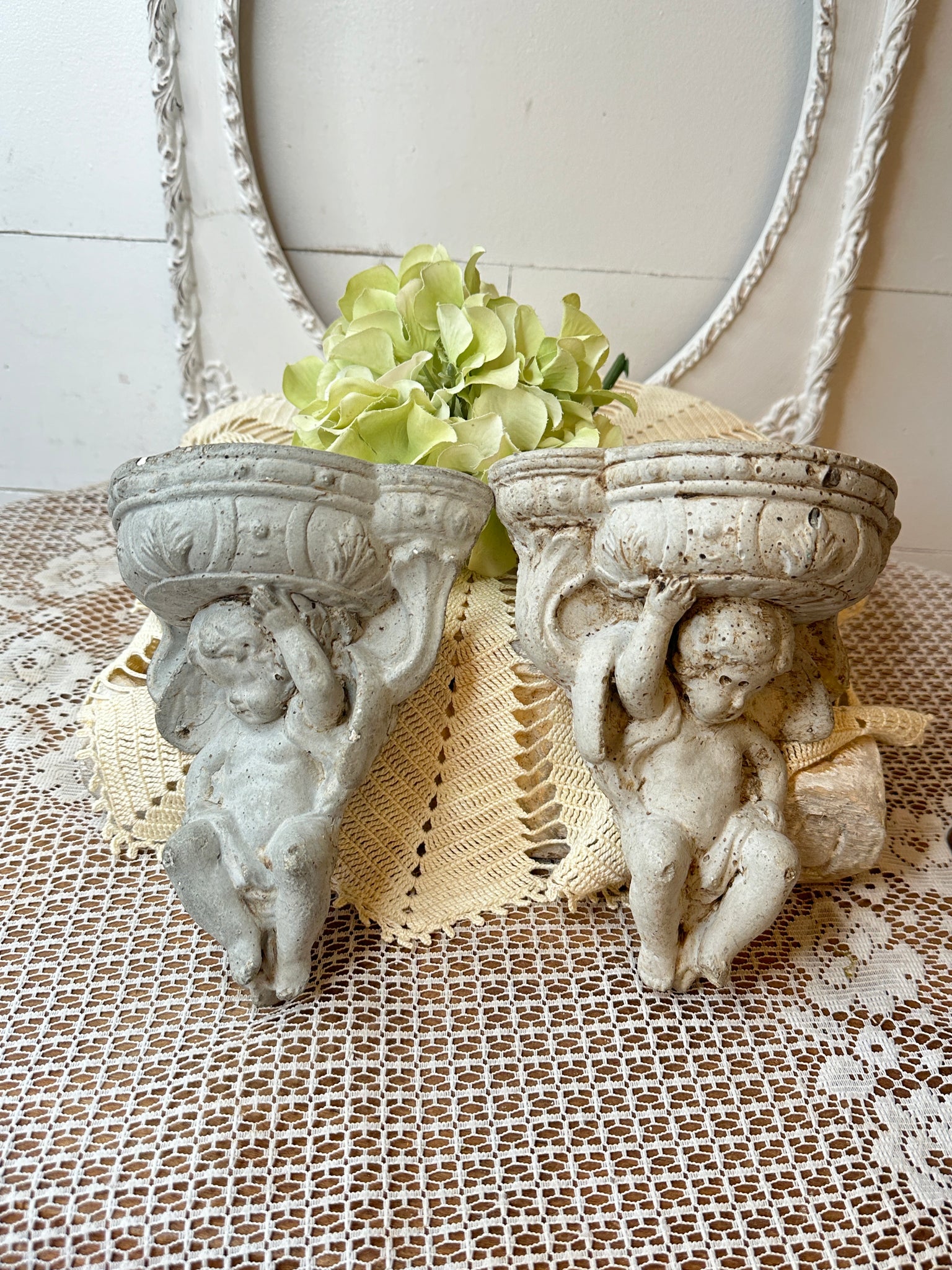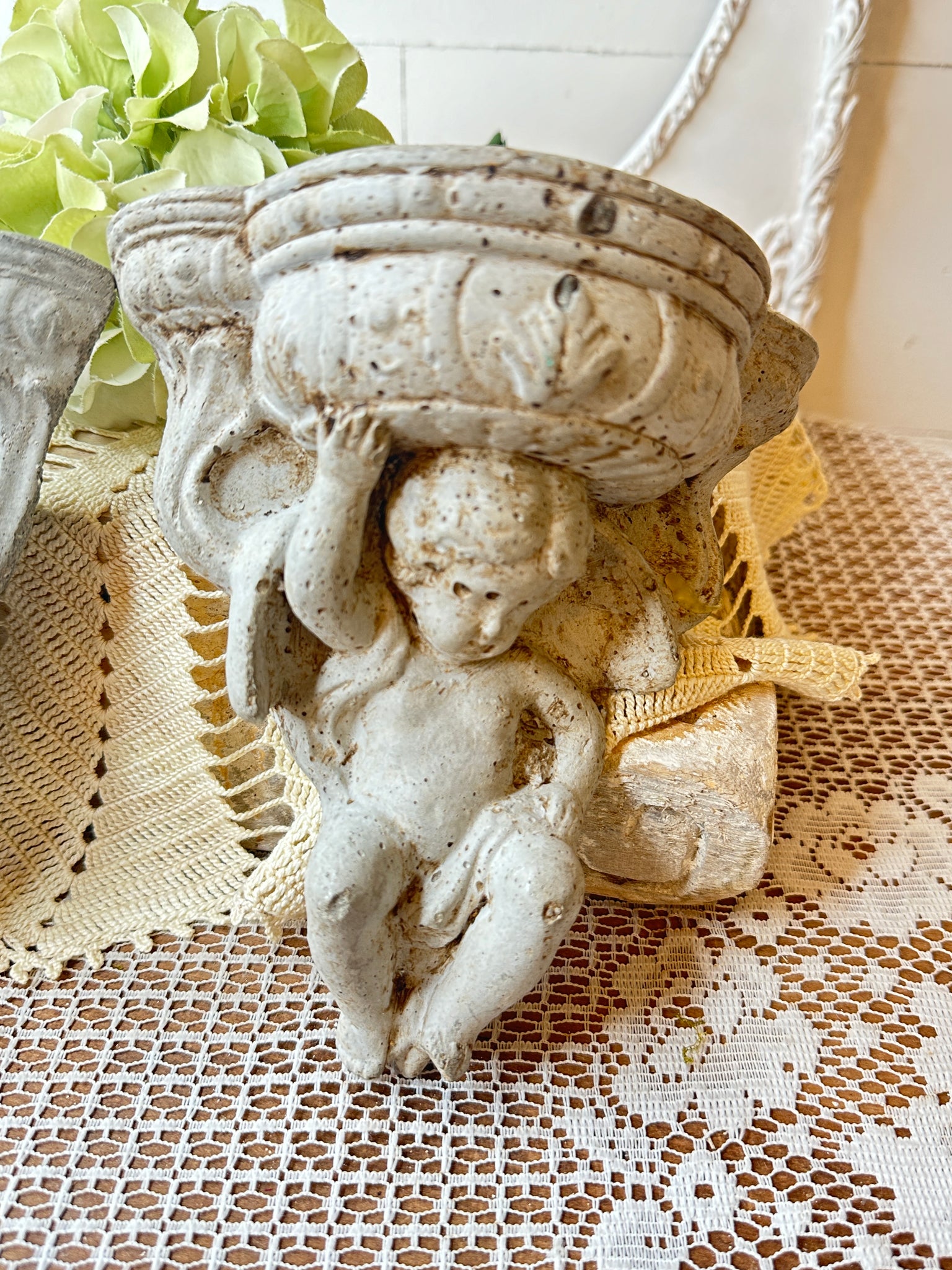 RARE VINTAGE CONCRETE CHERUB WAL SCONCE - 2 AVAILABLE