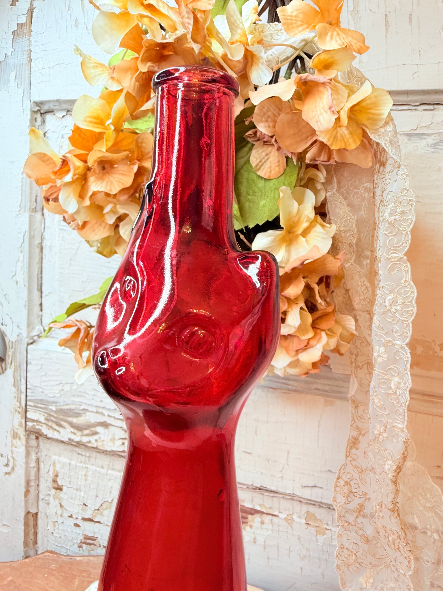 HAND BLOWN RED GLASS CAT BOTTLE VASE