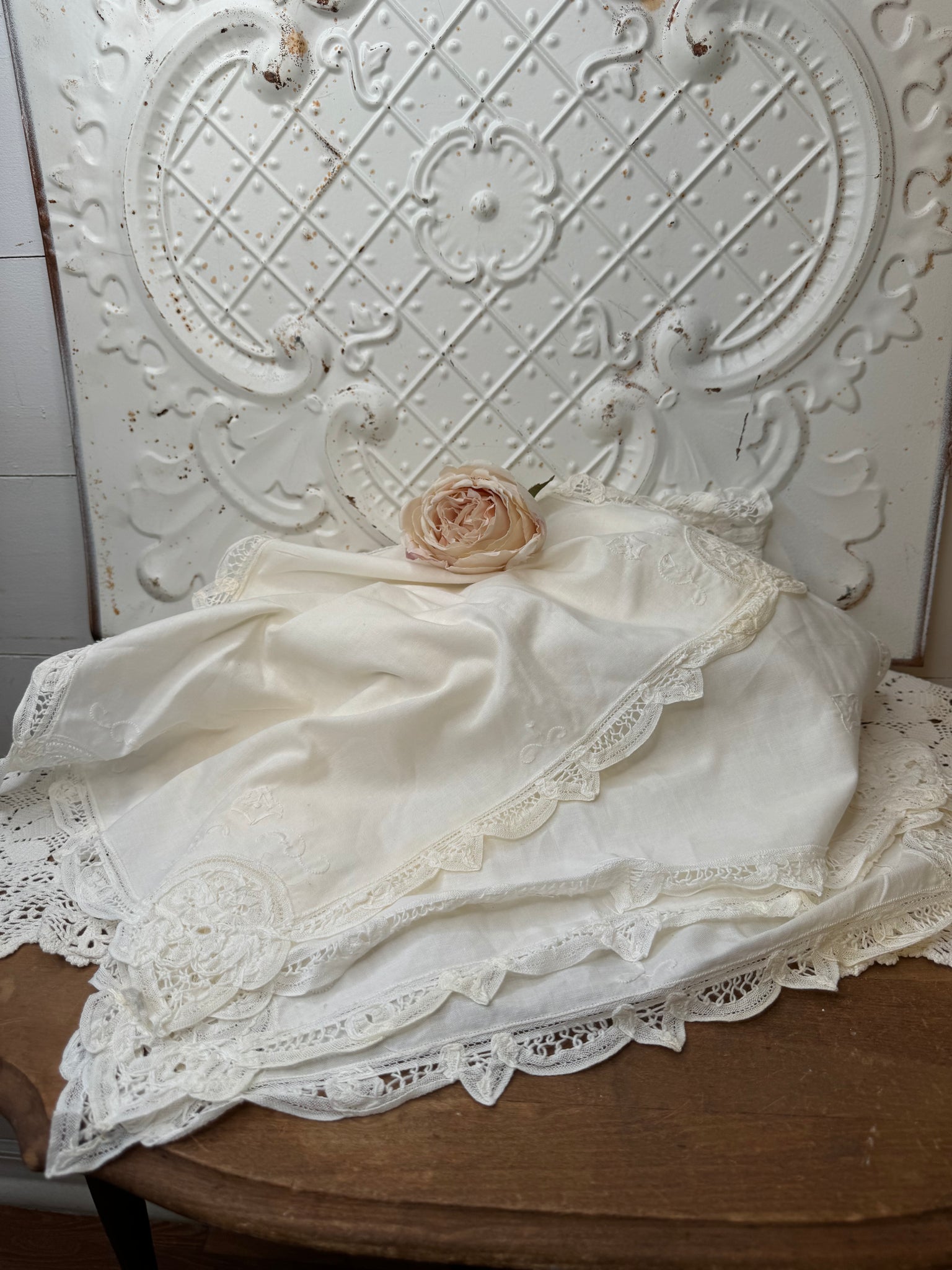 ORNATE DETAILED LACE TRIM TABLECLOTH