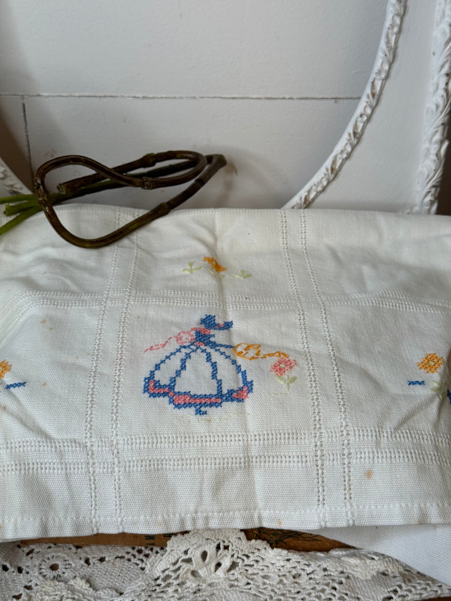 VICTORIAN LADY VINTAGE CROSS STITCH TABLECLOTH