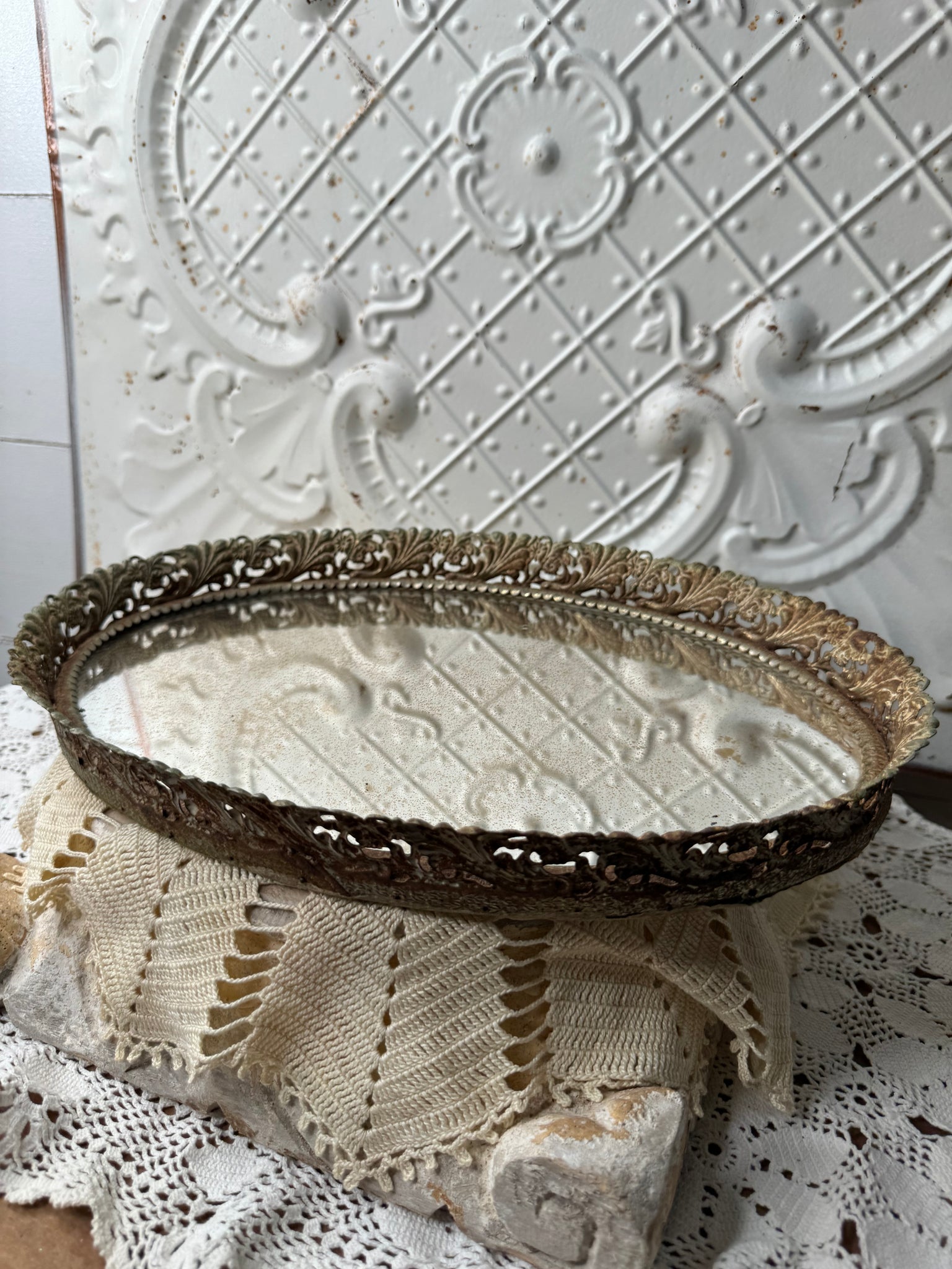 HOLLYWOOD REGENCY VINTAGE OVAL MIRROR TRAY