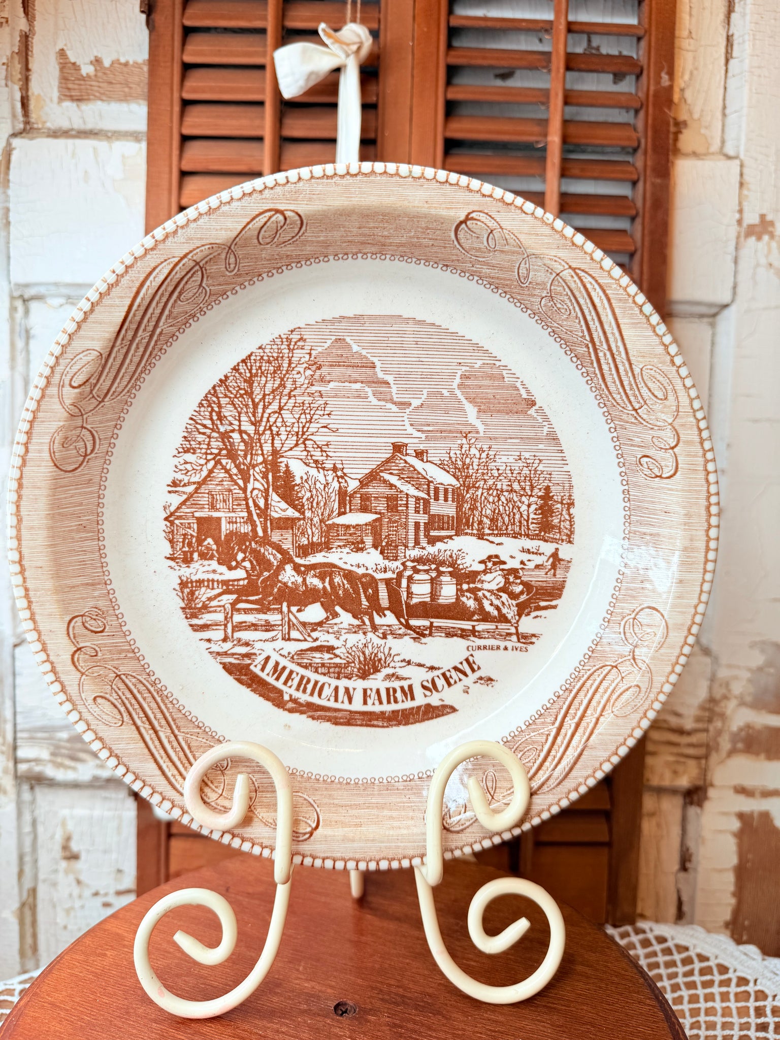 VINTAGE CURRIER AND IVES BROWN TRANSFERWARE PLATE