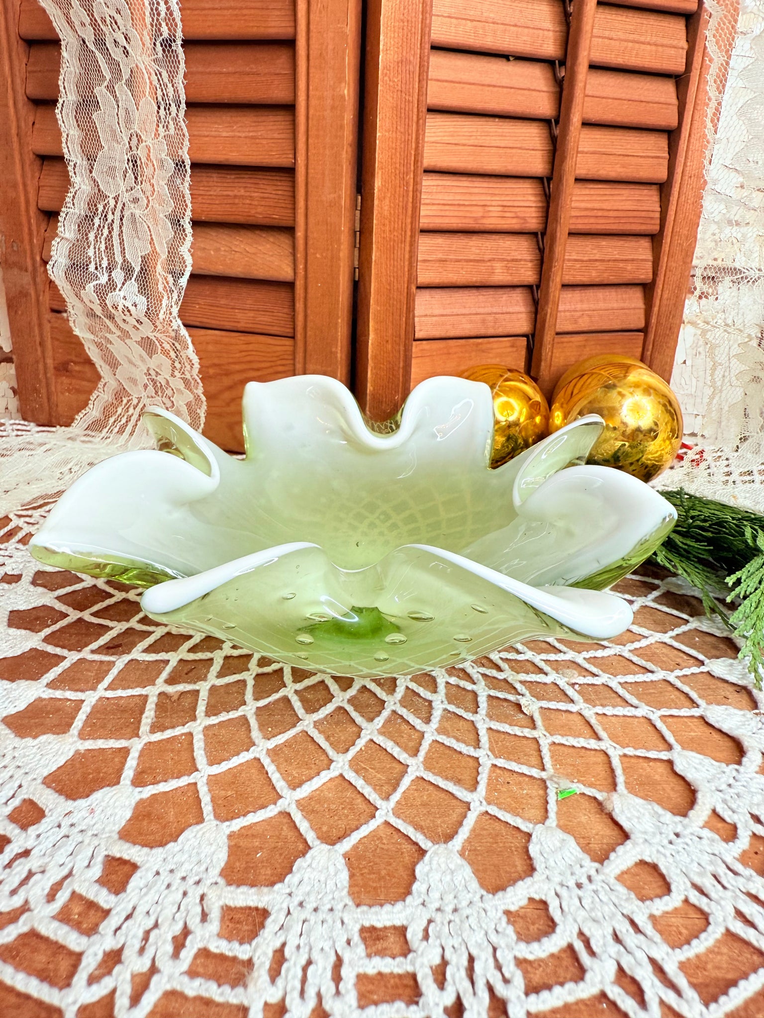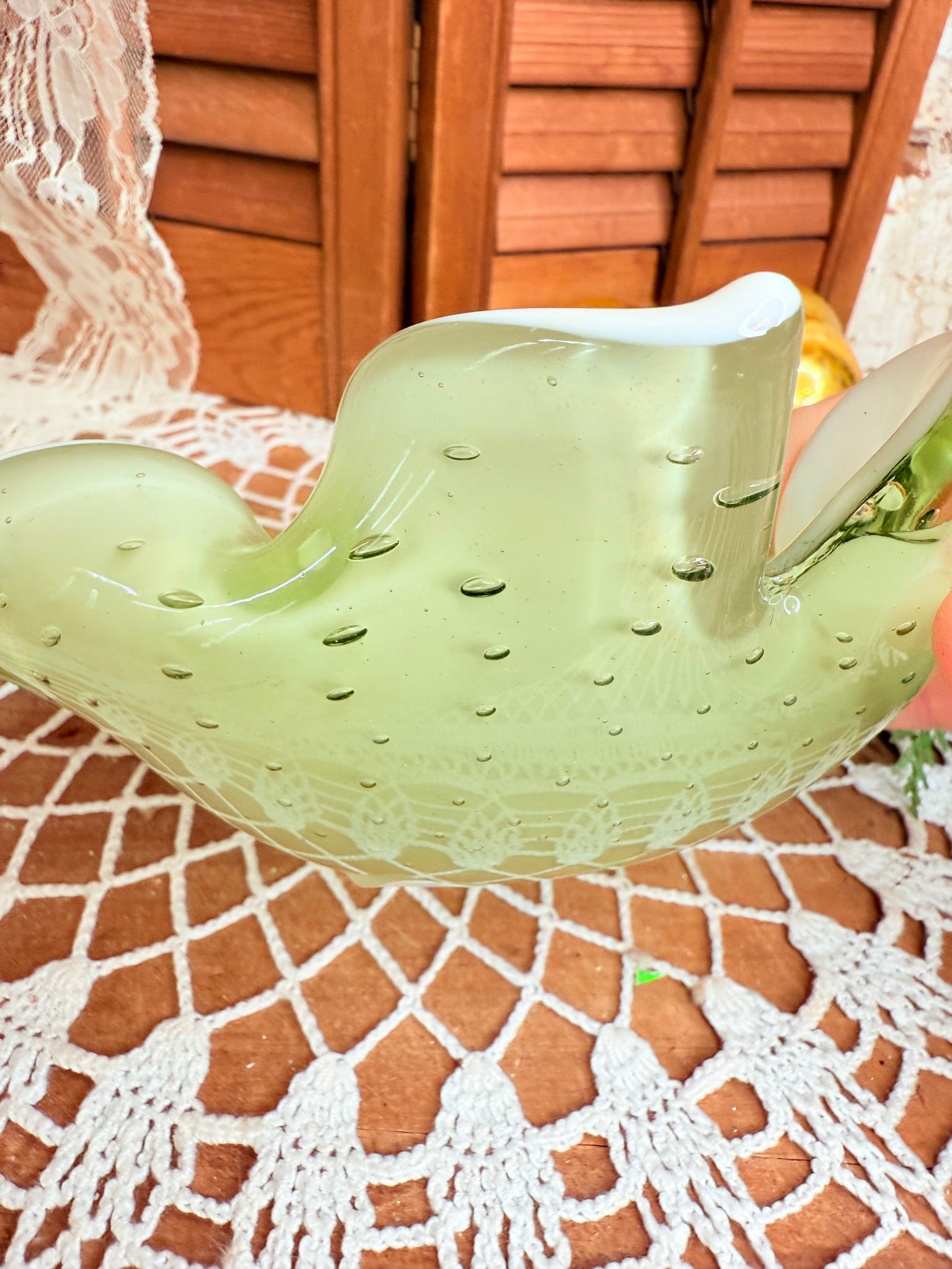 VINTAGE MURANO RAINDROP AMAZING RARE BOWL GREEN GLASS