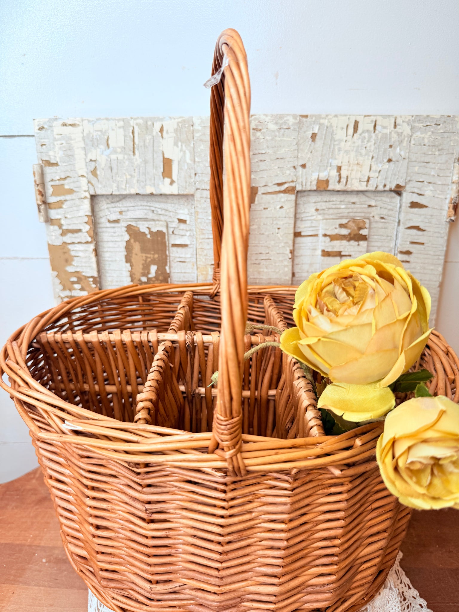 VINTAGE WICKER ORNATE DIVIDED BASKET