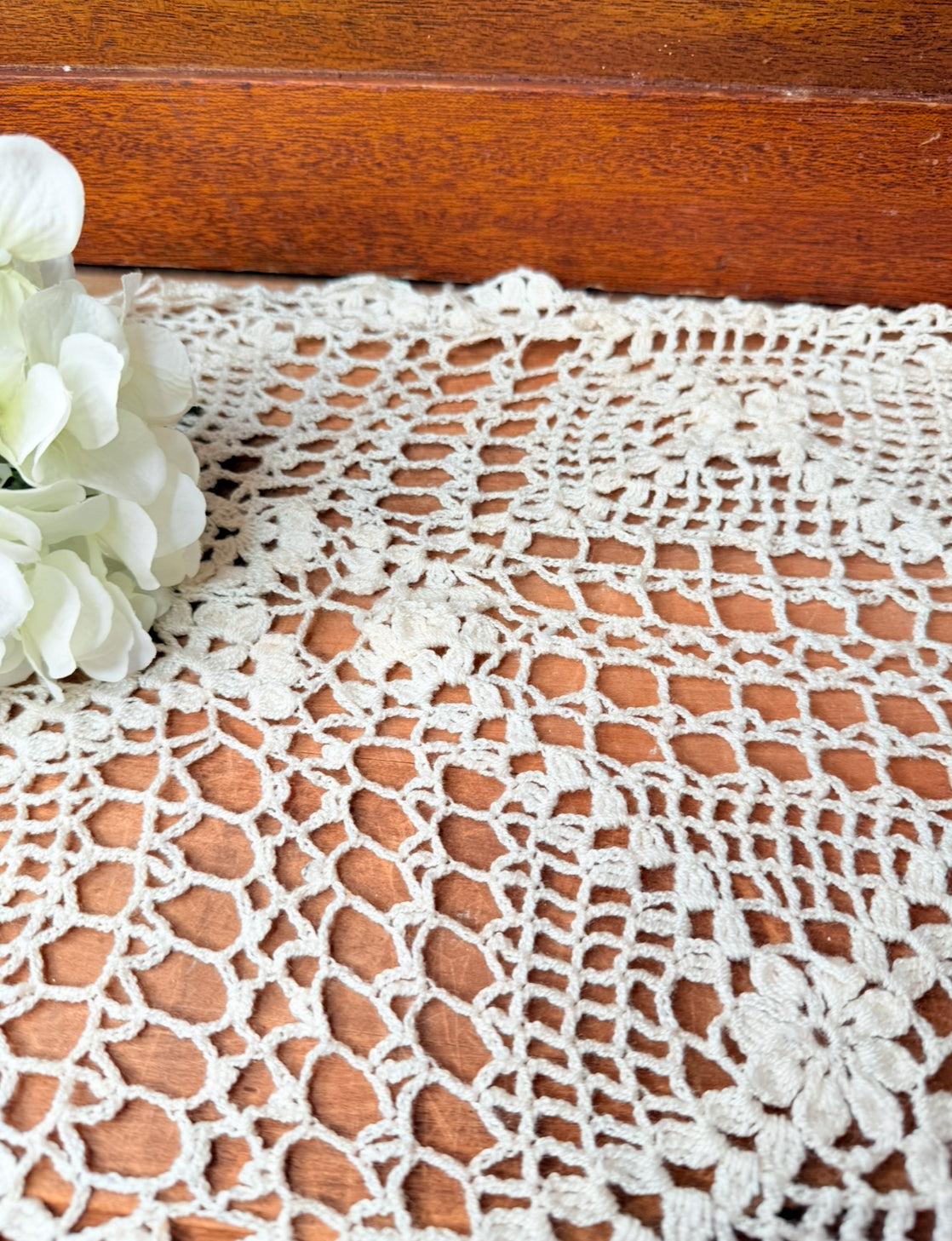 ANTIQUE HANDMADE FLORAL CENTERPIECE TABLECLOTH