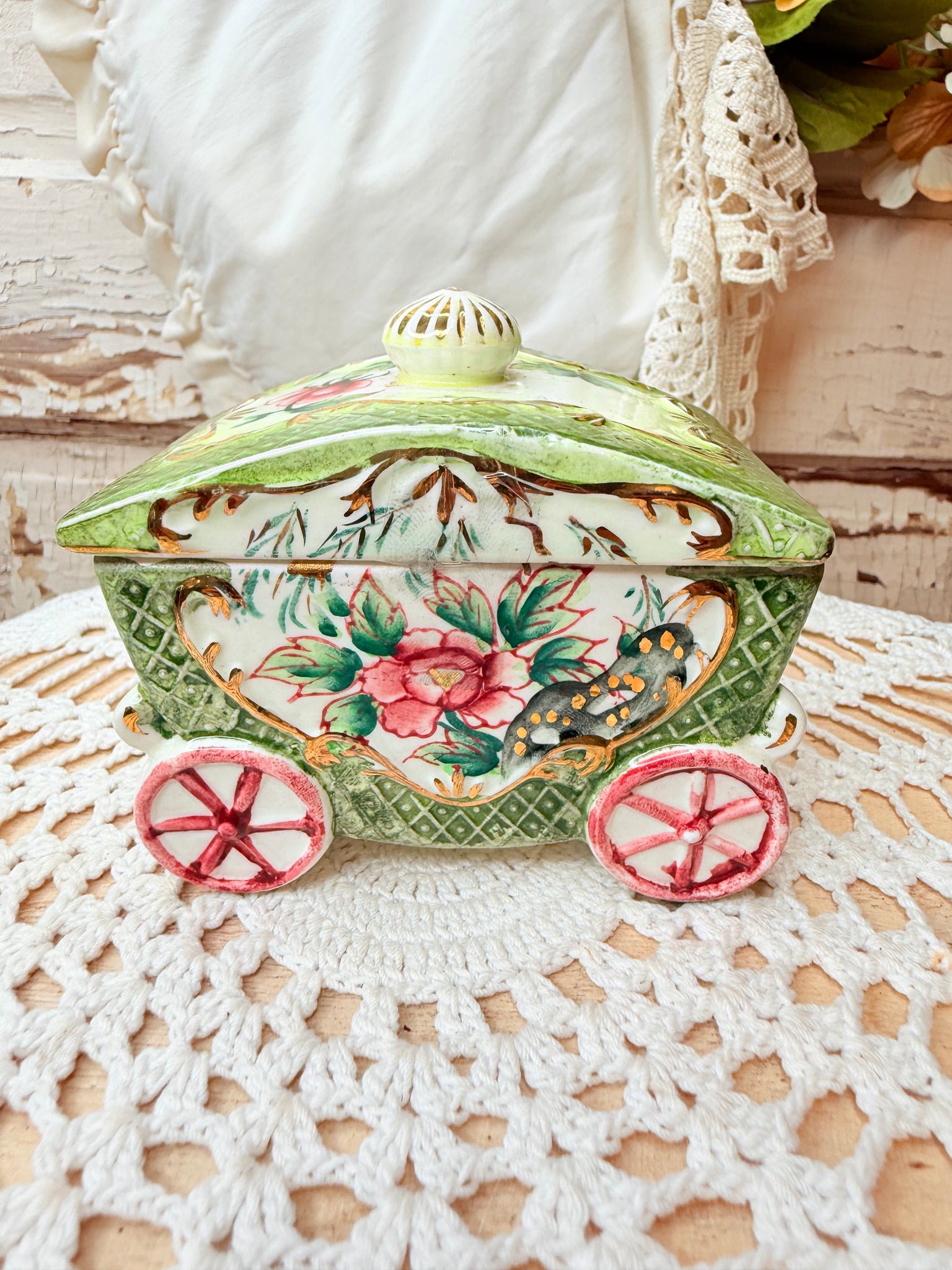 VINTAGE PORCELAIN CARRIAGE WITH ASHTRAYS