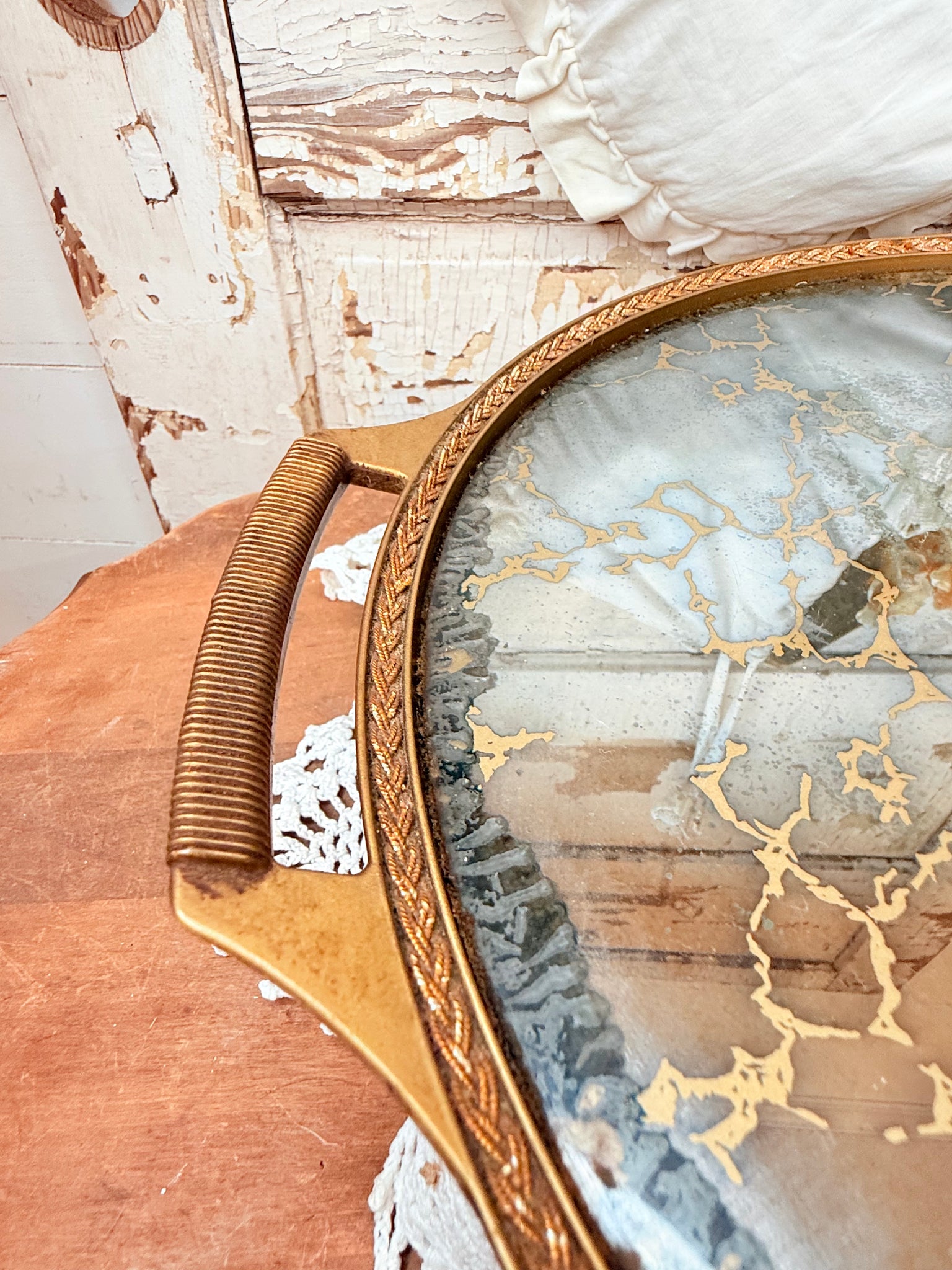 VINTAGE LAZY SUSAN MIRROR TRAY