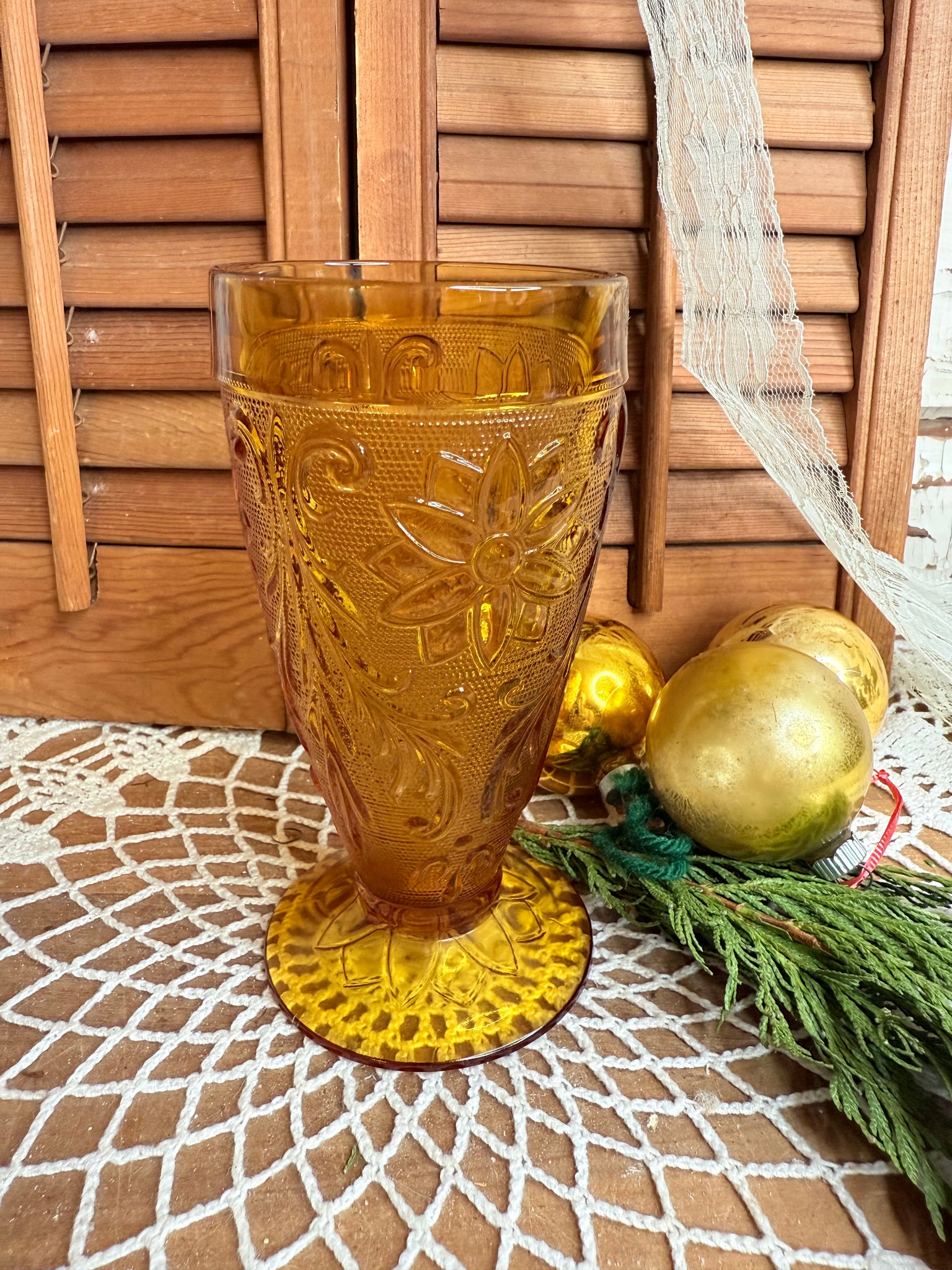 SET OF 3 DAMASK AMBER GLASS ORNATE CUPS