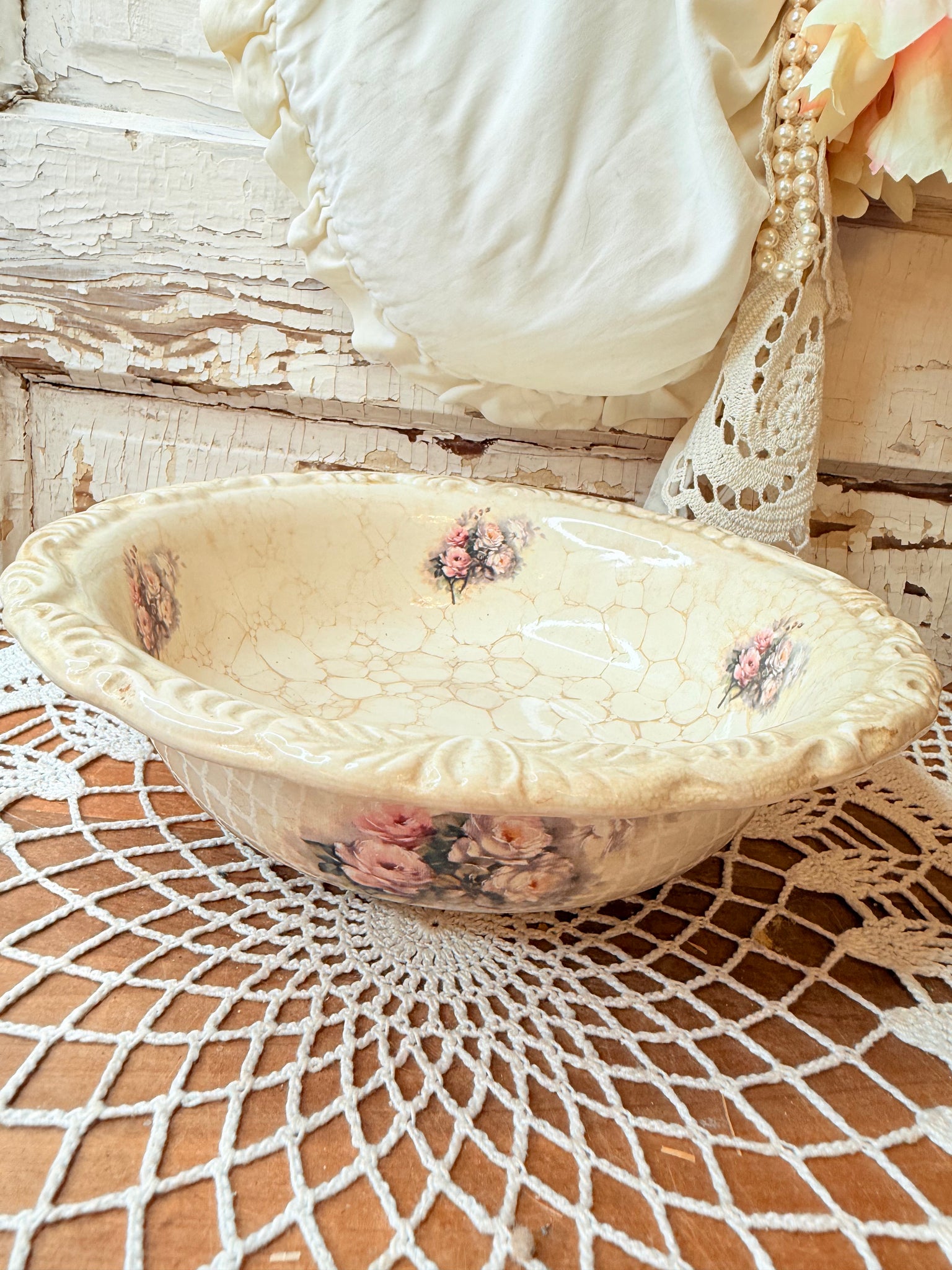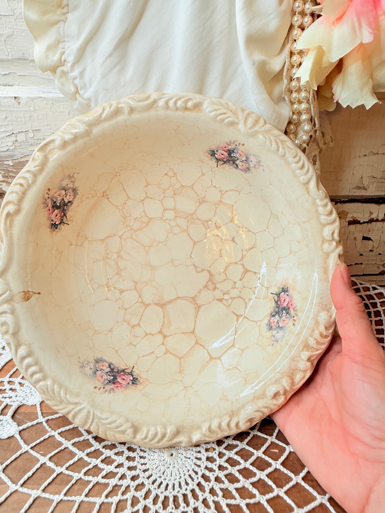 AMAZING VINTAGE CRAZED FLORAL BOWL