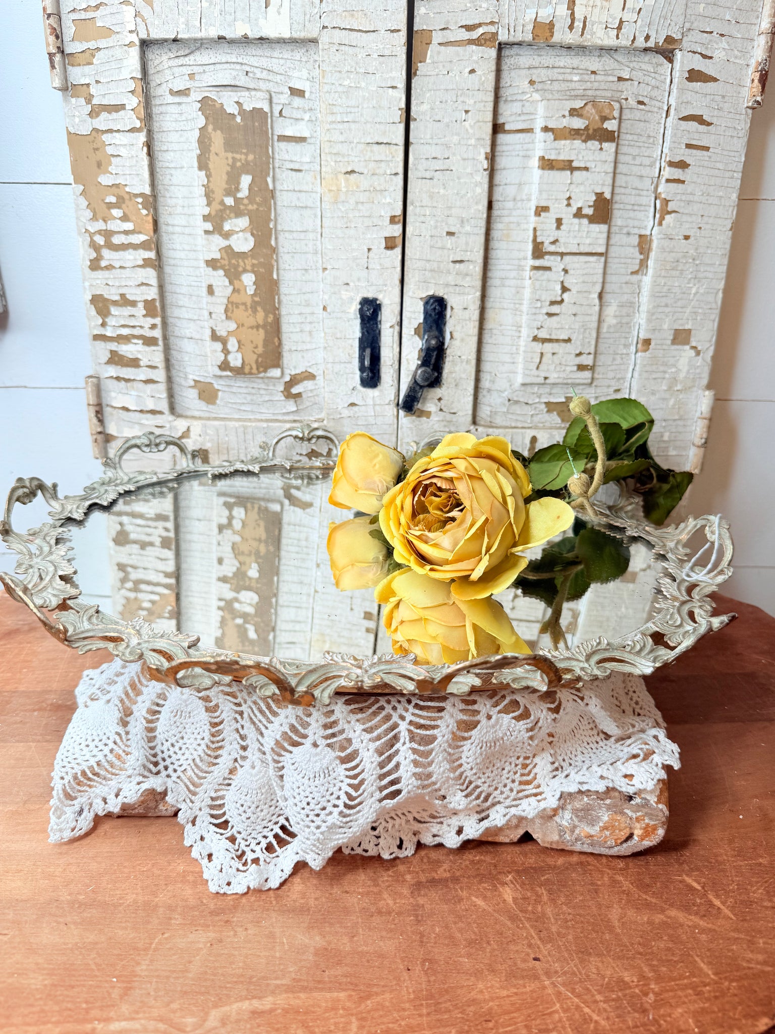 ORNATE ANTIQUE RARE LARGE MIRROR VANITY TRAY STUNNING!!!!