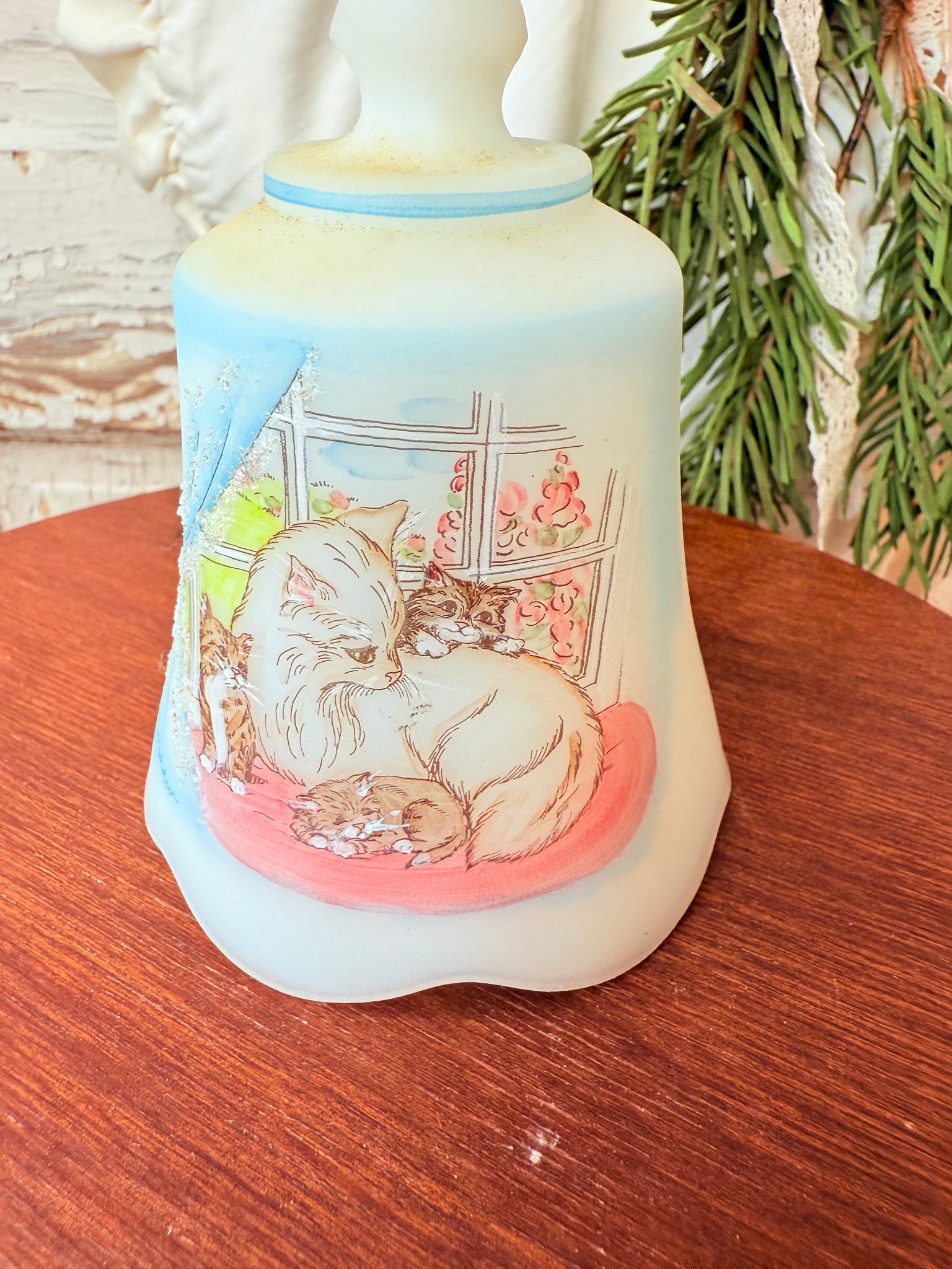 RARE FENTON HAND-PAINTED CAT BELL
