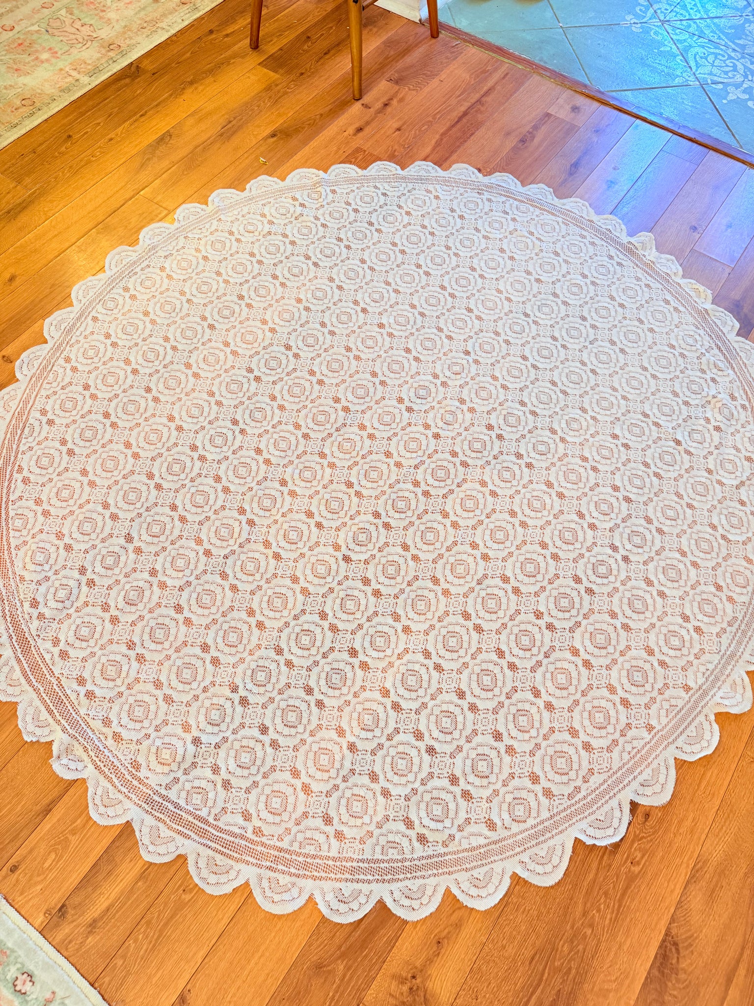 RARE ROUND ANTIQUE TABLECLOTH 60 INCH