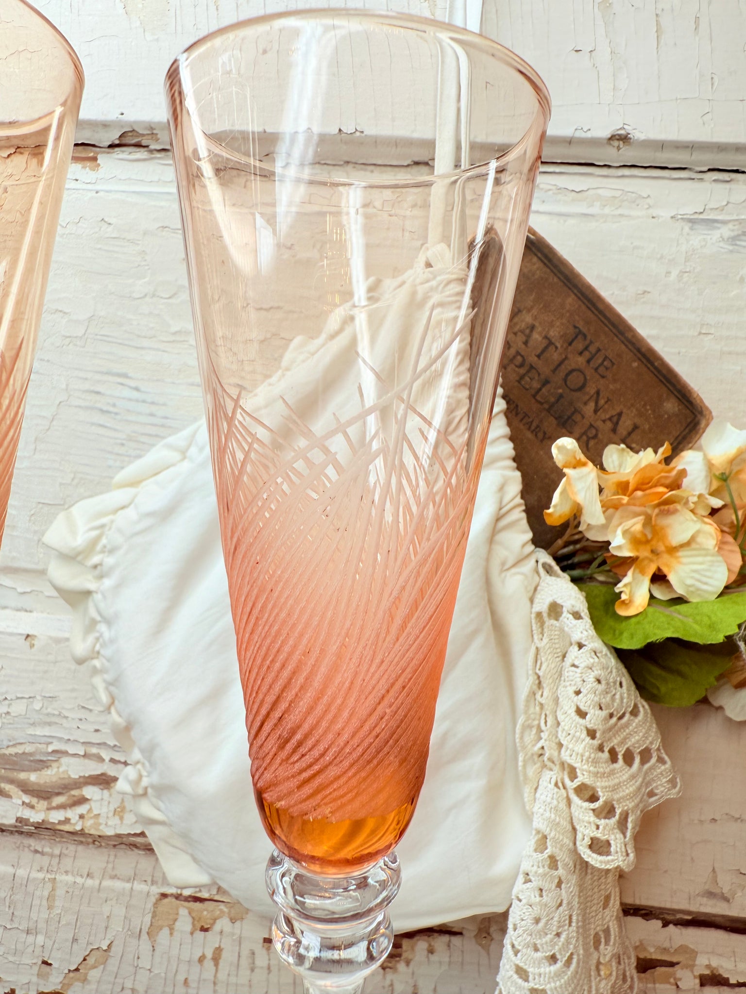 SET OF 2 TALL AMBER DETAILED CHAMPAGNE GLASSES