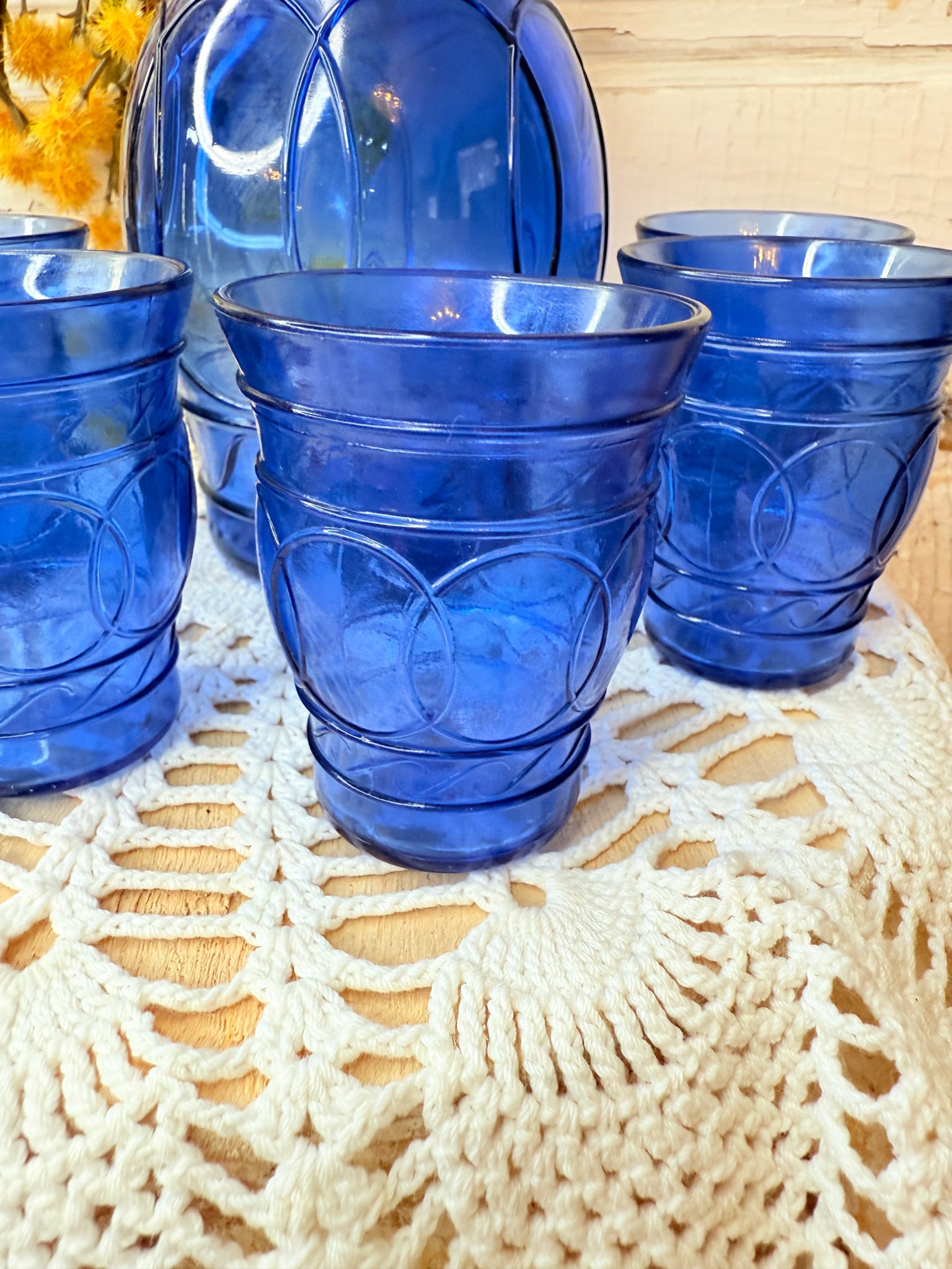 7 PIECE VINTAGE COBALT BLUE DECANTER AND GLASSES SET