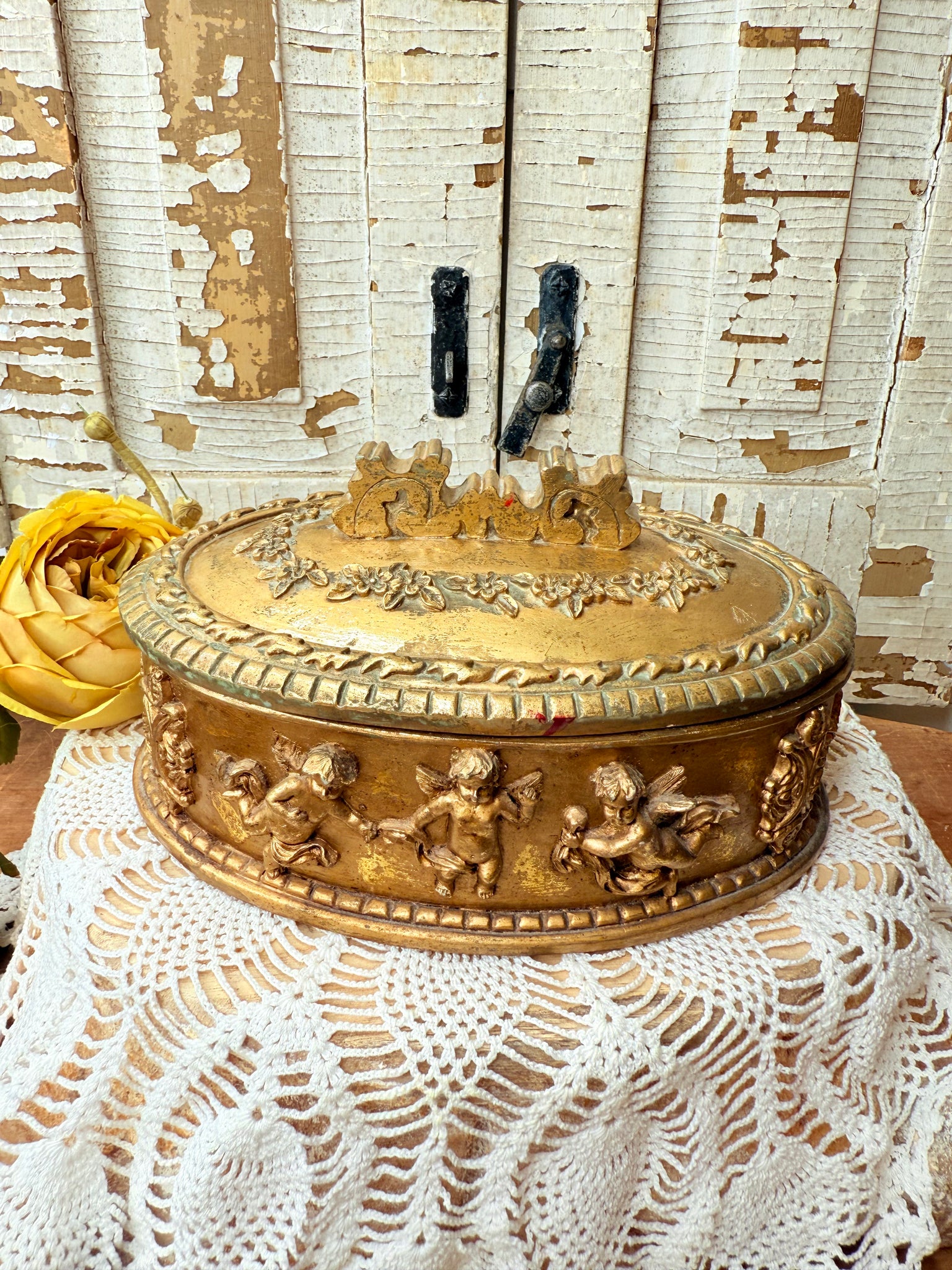 VINTAGE GOLD LIDDED CHERUB BOX