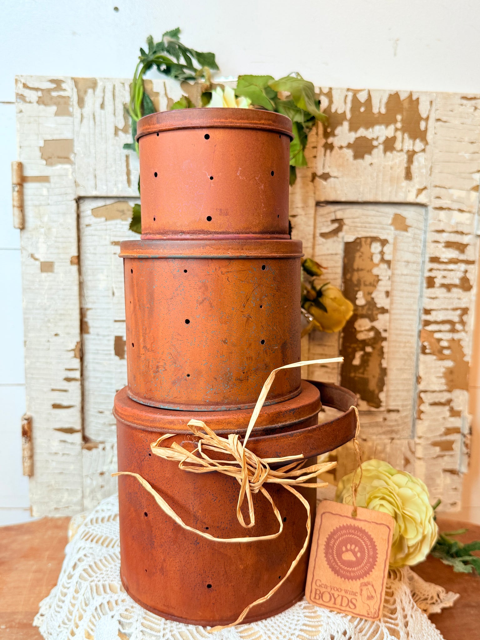 MEDIUM VINTAGE RUSTY CRUSTY STACKABLE BOX DECOR BOYDS BEAR