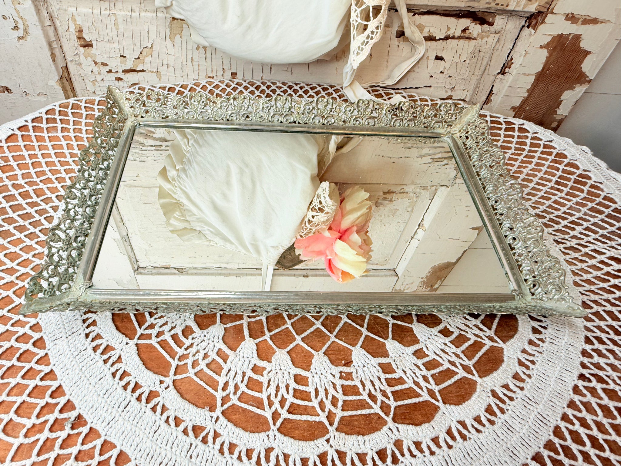XL DETAILED VANITY MIRROR TRAY ANTIQUE VICTORIAN