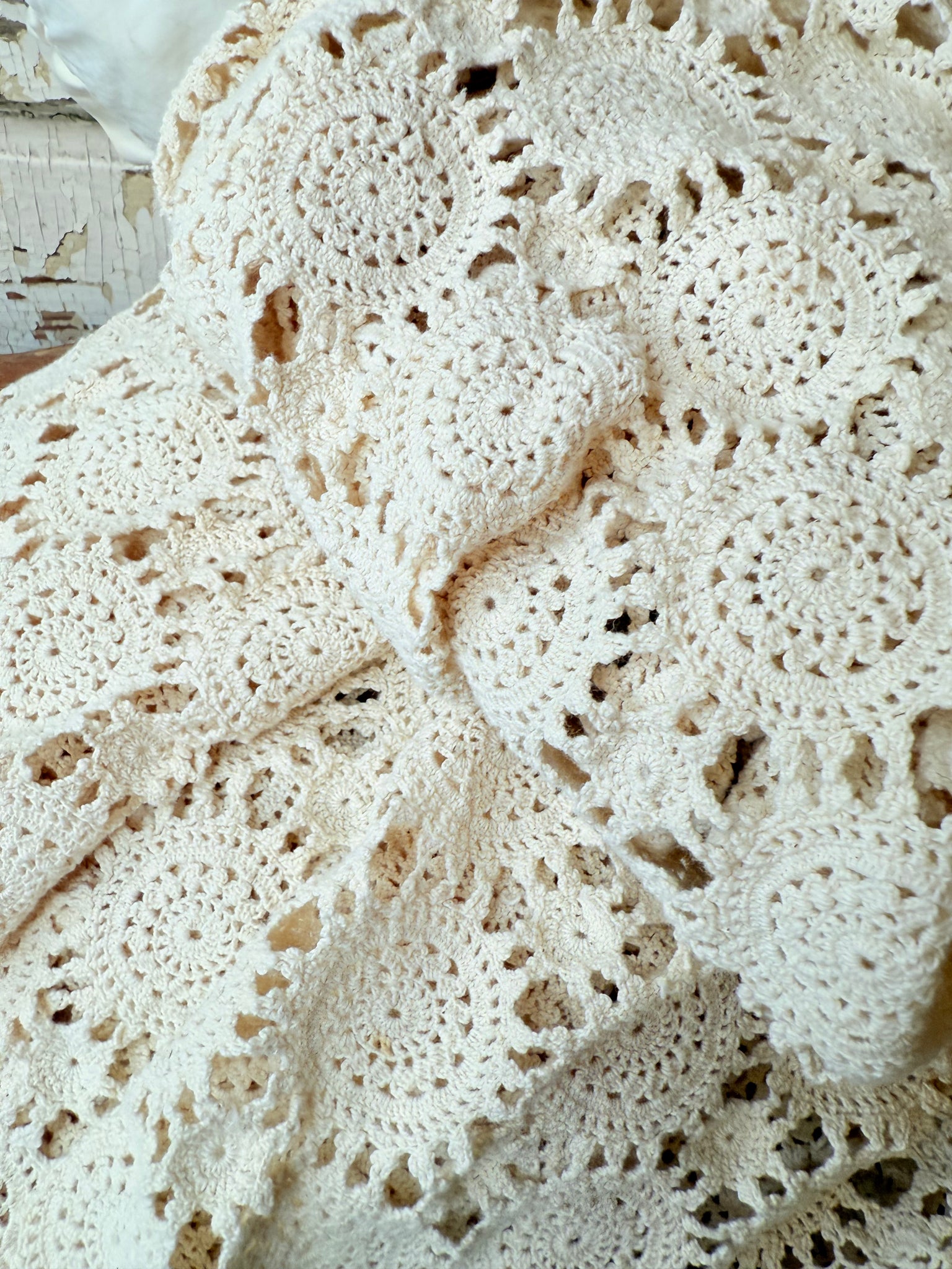 GORGEOUS ANTIQUE HANDMADE CROCHET LARGE RECTANGLE TABLE CLOTH / BEDSPREAD / COUCH COVER